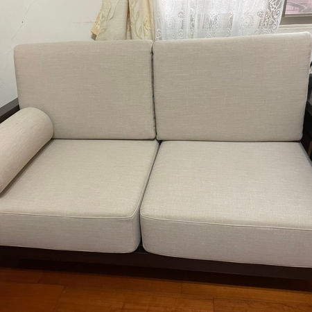 中式實木沙發坐墊訂製|涼感布料與特製圓柱型扶手靠枕組合